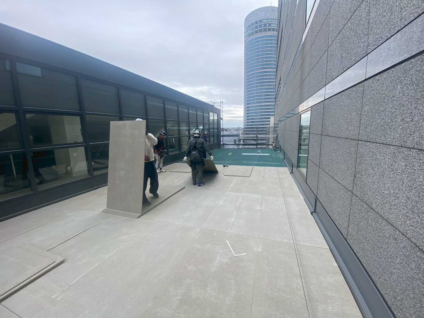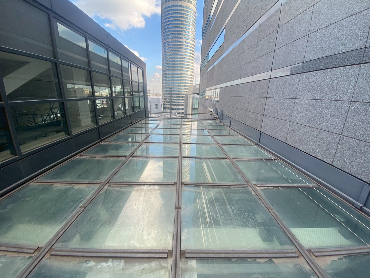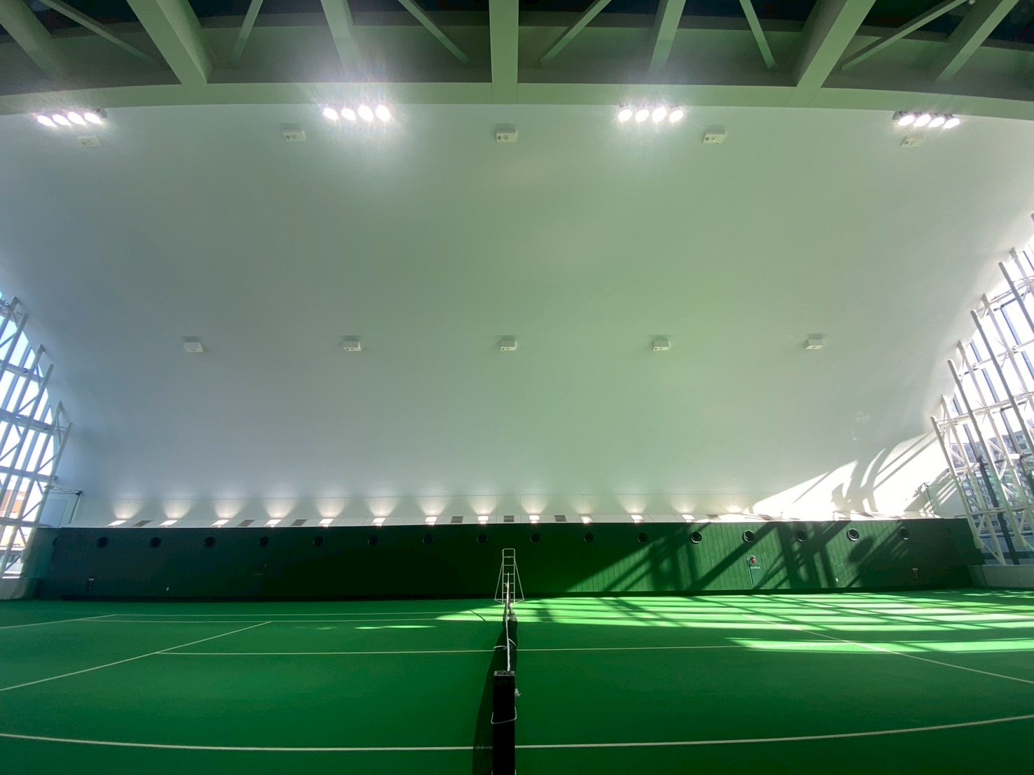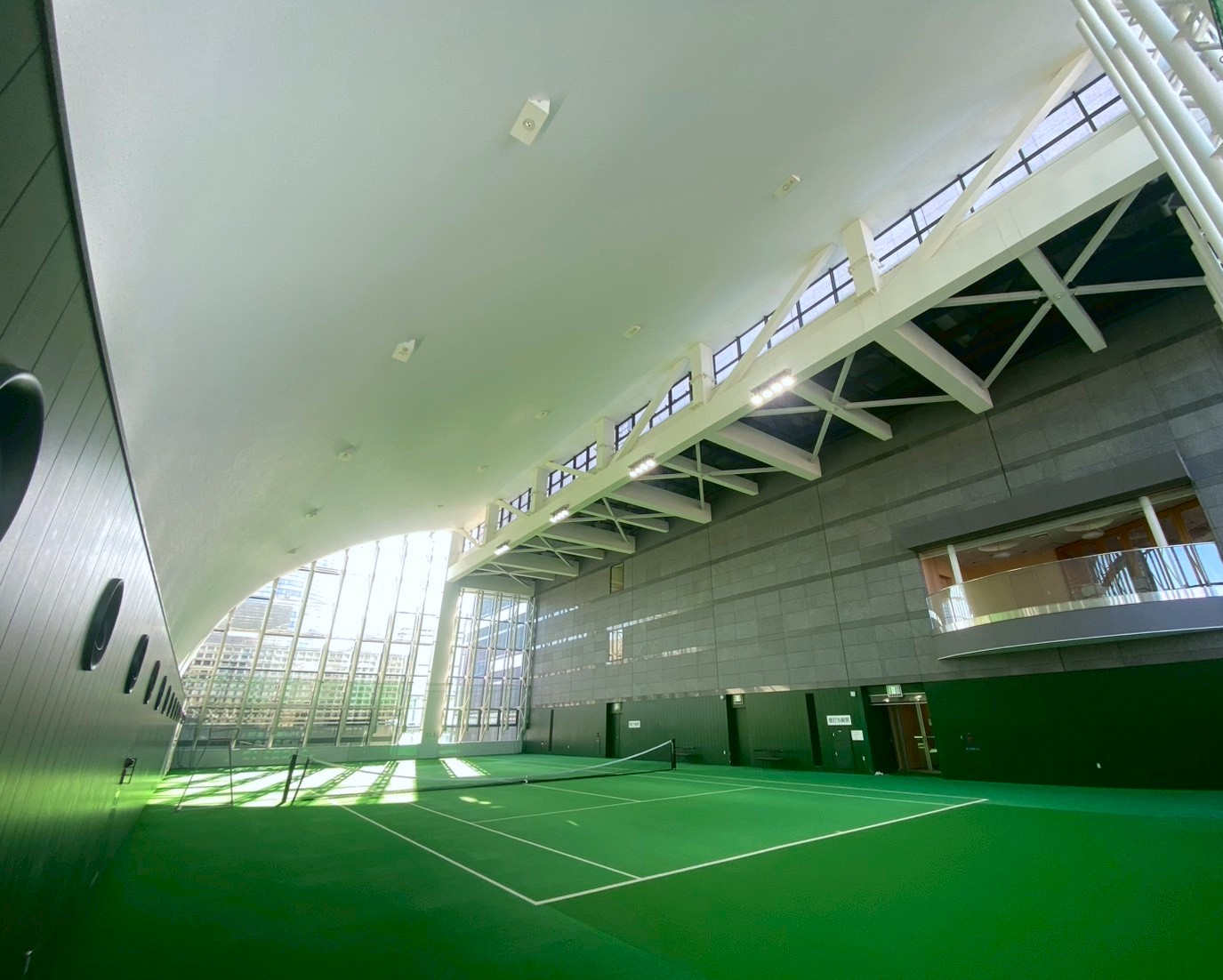 イノテック本社ビルにて、テニスコート上部R屋根漏水によるR屋根葺及び内部天井貼替・外壁シーリング打替・ガラストップライト部新規シート防水の改修工事を実施しました。安全対策と周辺環境への配慮を徹底し、既存構造の状態に応じた最適な工法で改修を行いました。工事期間中も建物利用への影響を最小限に抑え、品質と安全を両立した施工を実現しています。